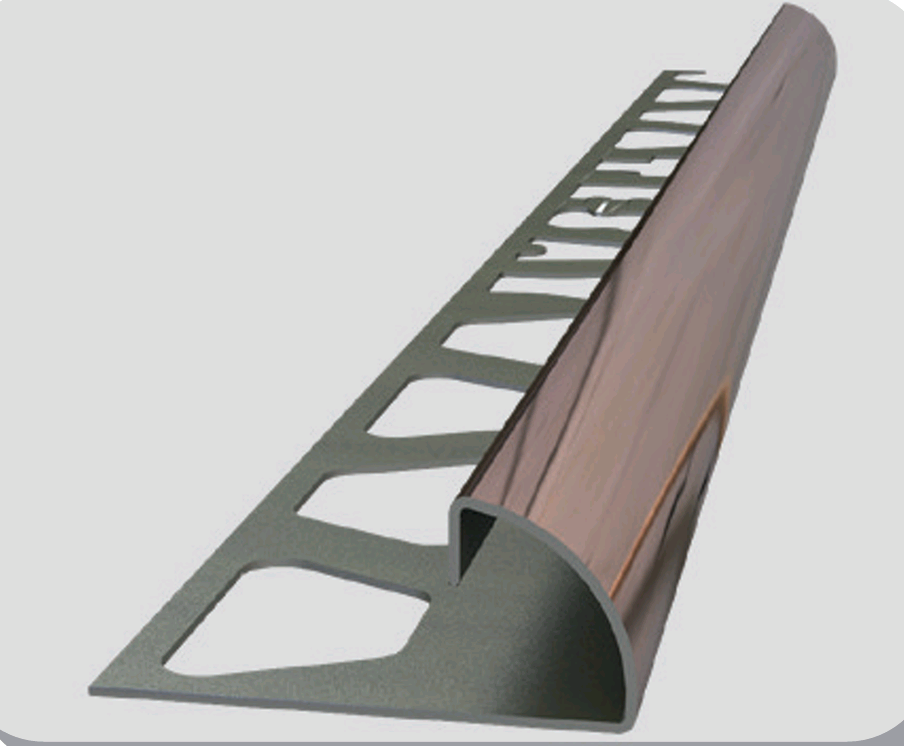 Profil krawędziowy owalny, wykonany ze stali nierdzewnej. Daje możliwość dokładnego dopasowania do krawędzi zewnętrznych. Ochrania płytki ceramiczne, gwarantując bezpieczne, równe, a także estetyczne wykończenie narożnika. Cena produktu zależna jest od rozmiaru (10mm/12mm), oraz sposobu wykończenia.